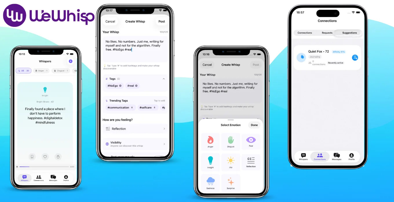 WeWhisp is a slow social app for meaningful writing. Share short thoughts (“Whisps”), tag how you feel, and connect through calm, respectful conversations—without the noise of likes, endless scrolling, or constant notifications.